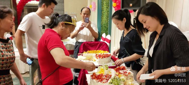 在愉快的《生日快乐》音乐中,家人们分享着甜美的生日蛋糕