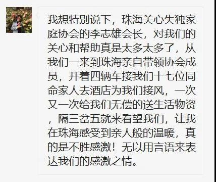竹子还特别强调对珠海市关心失独家庭协会的感激,我将她的原话贴在此处,让大家更直观地感受到她的感动与感激。