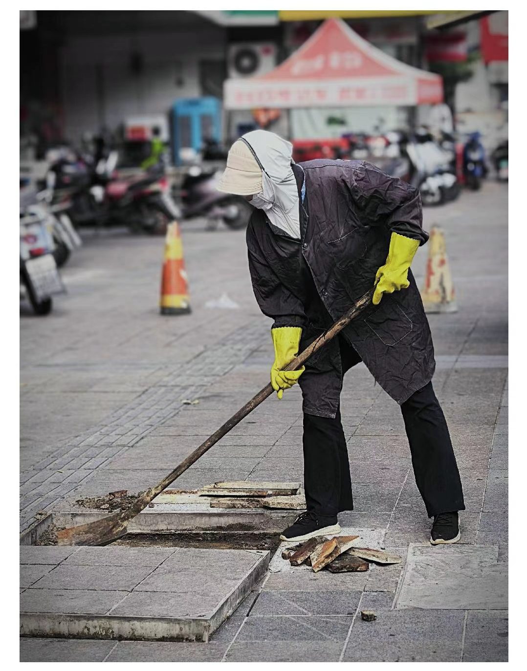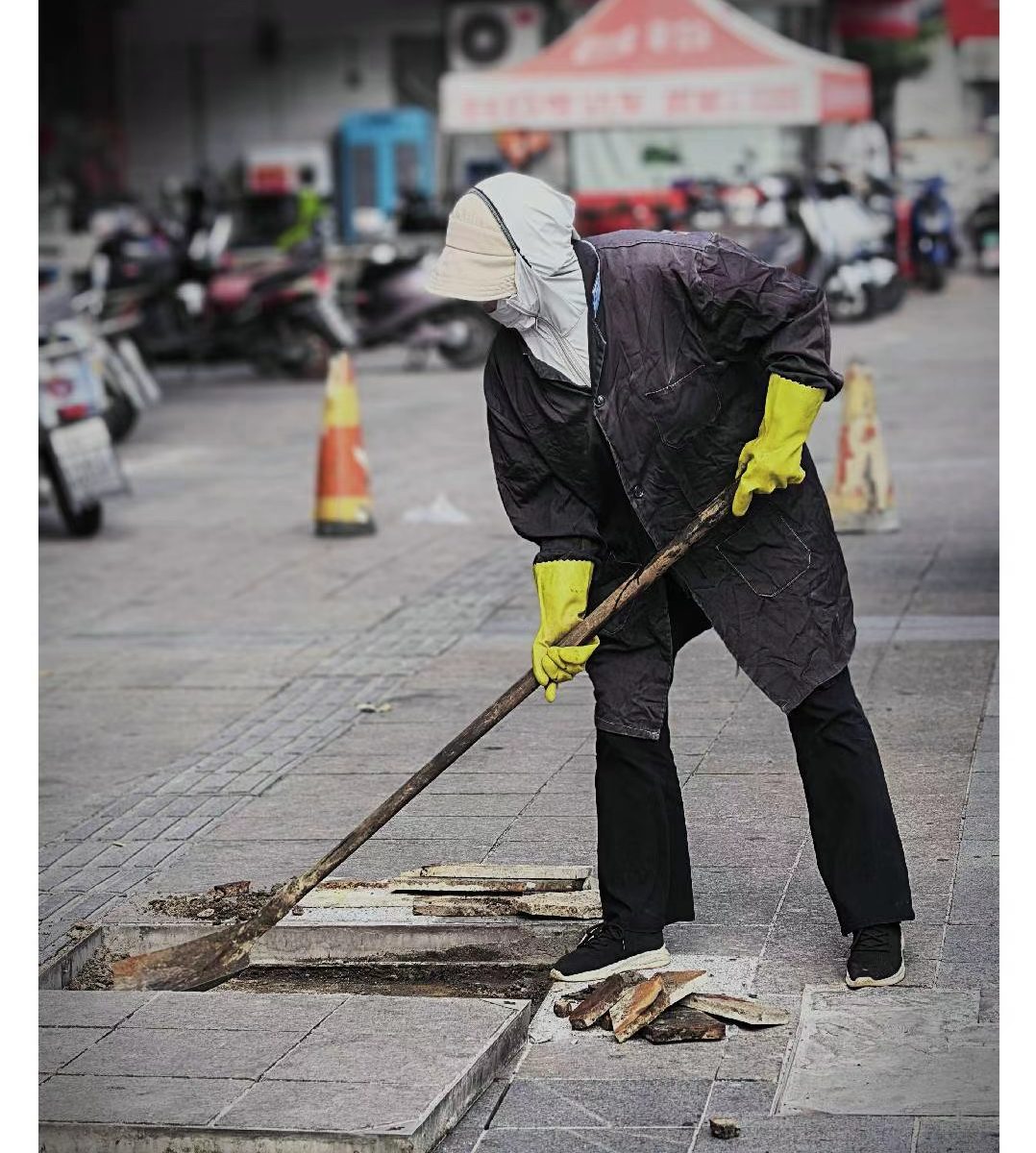 还有建筑工地上,挖掘机旁的工人、道路维修者……