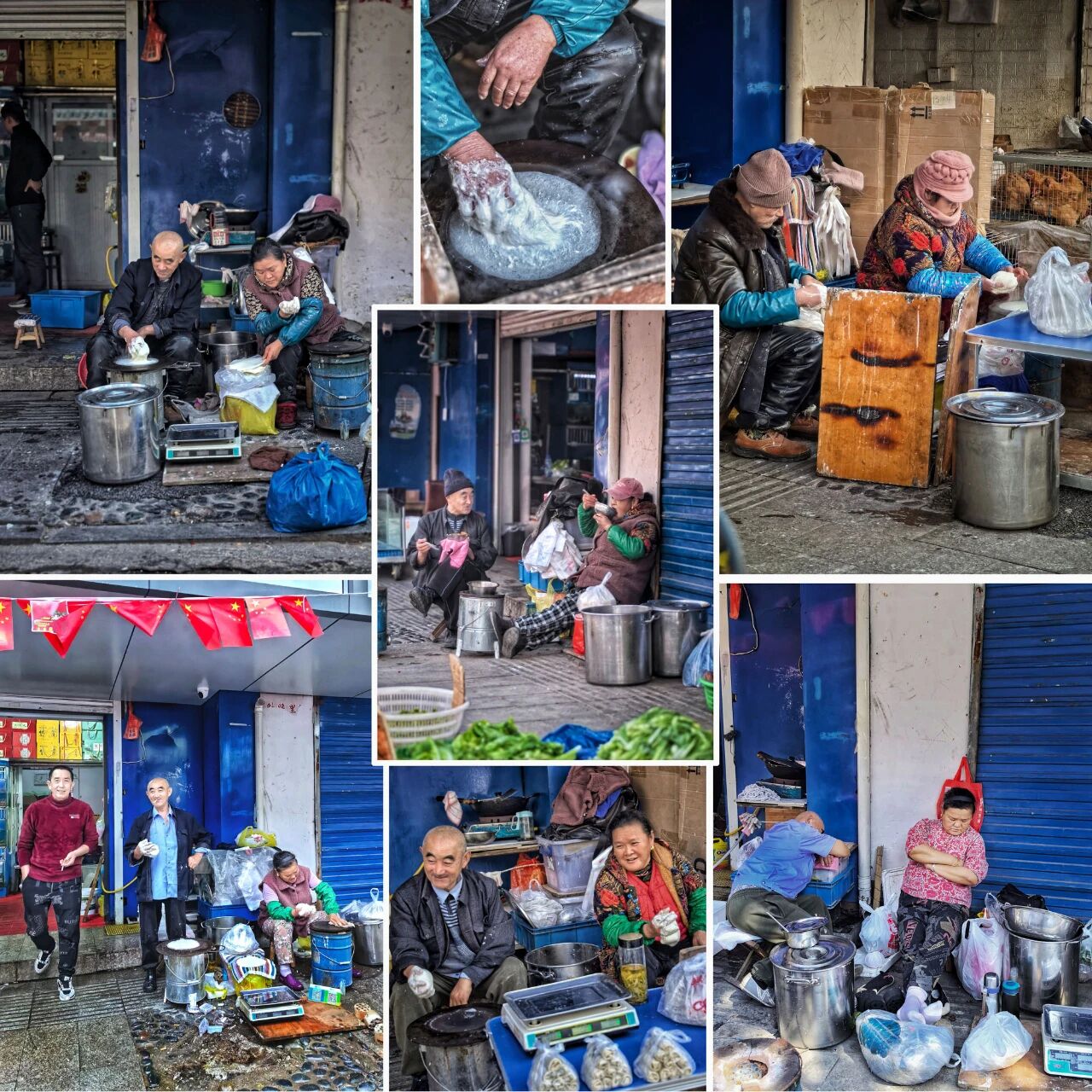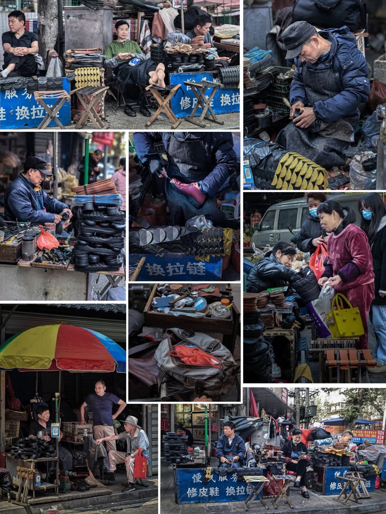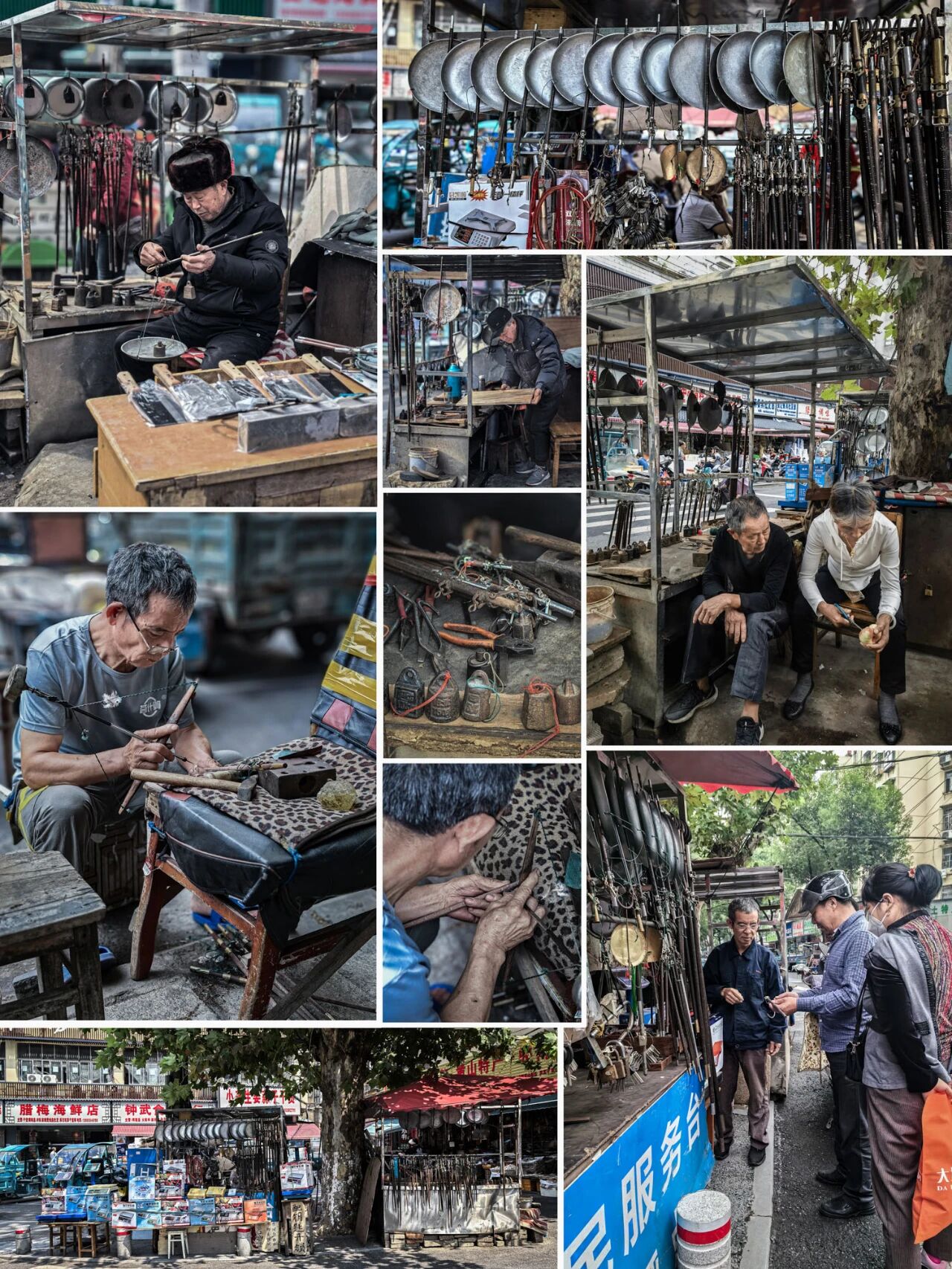 在市井的烟火里,每一张面孔都是生活的诗人。他们在菜场的角落侍弄蔬菜,在摊位前专注地处理食材,在人来人往中守着自己的小营生。那双手,或是分拣着鲜嫩的香菜,或是摆弄着古老的秤杆,或是缝补着岁月的痕迹,每一个动作都藏着对生活的热忱。这些平凡的瞬间,拼凑出最真实的人间百态,成为了时光里最温暖的印记,诉说着市井深处的温情与坚韧。