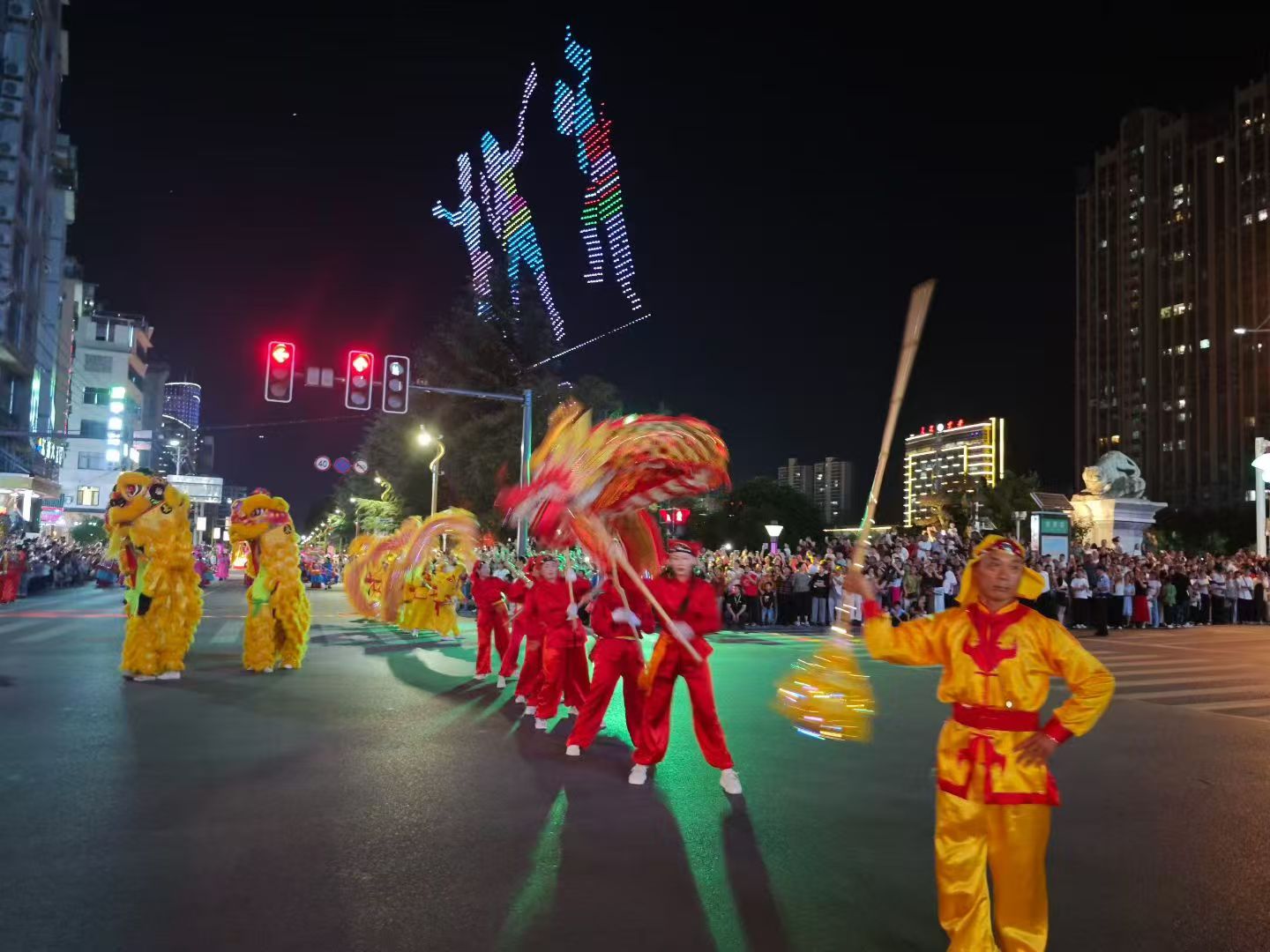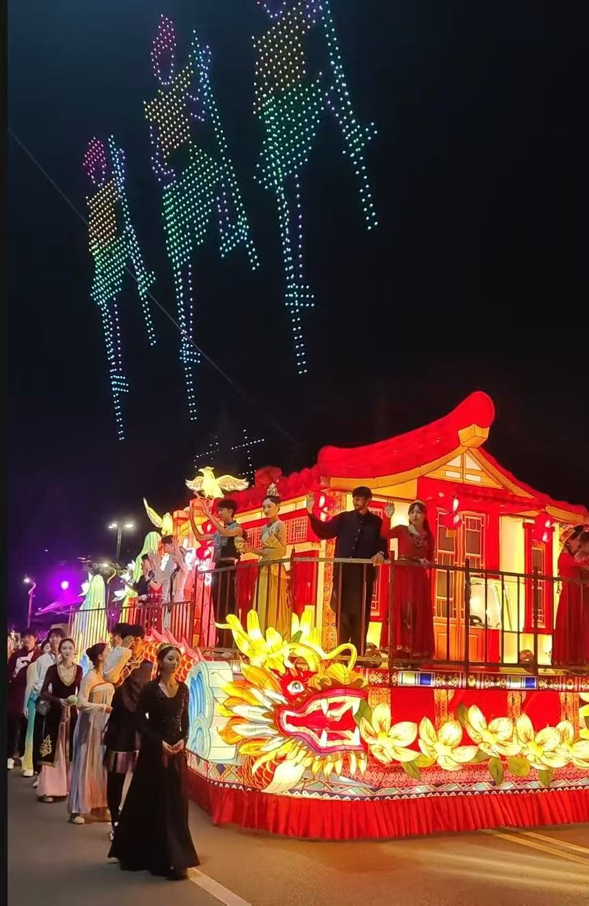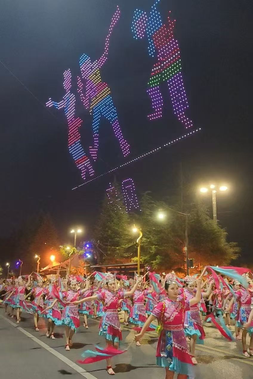 恩施州利川市是全国闻名凉城,今年土家女儿节相亲会在利川市隆重举办5天,9月2号最最后庆典晚会,花车与舞龙、舞狮及民族服装表演巡游,天空中无人机组成美丽的图案不停变幻,市民万人空巷观看盛况空前,只顾用手机和360相机录像,视频太长只好剪辑几张请各位观赏。