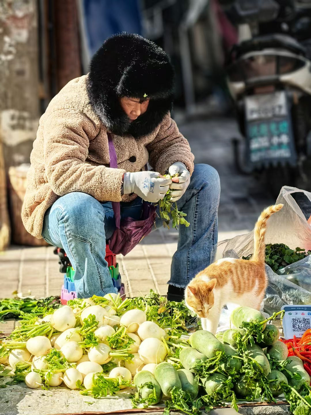 街头一隅,几位菜农带着自家种的新鲜蔬菜,静静守着摊位。翠绿的青菜、鲜嫩的菠菜,满满都是自然的馈赠。虽然没有华丽的叫卖,只有朴实的等待,这一方小天地,藏着平凡又真实的生活模样。