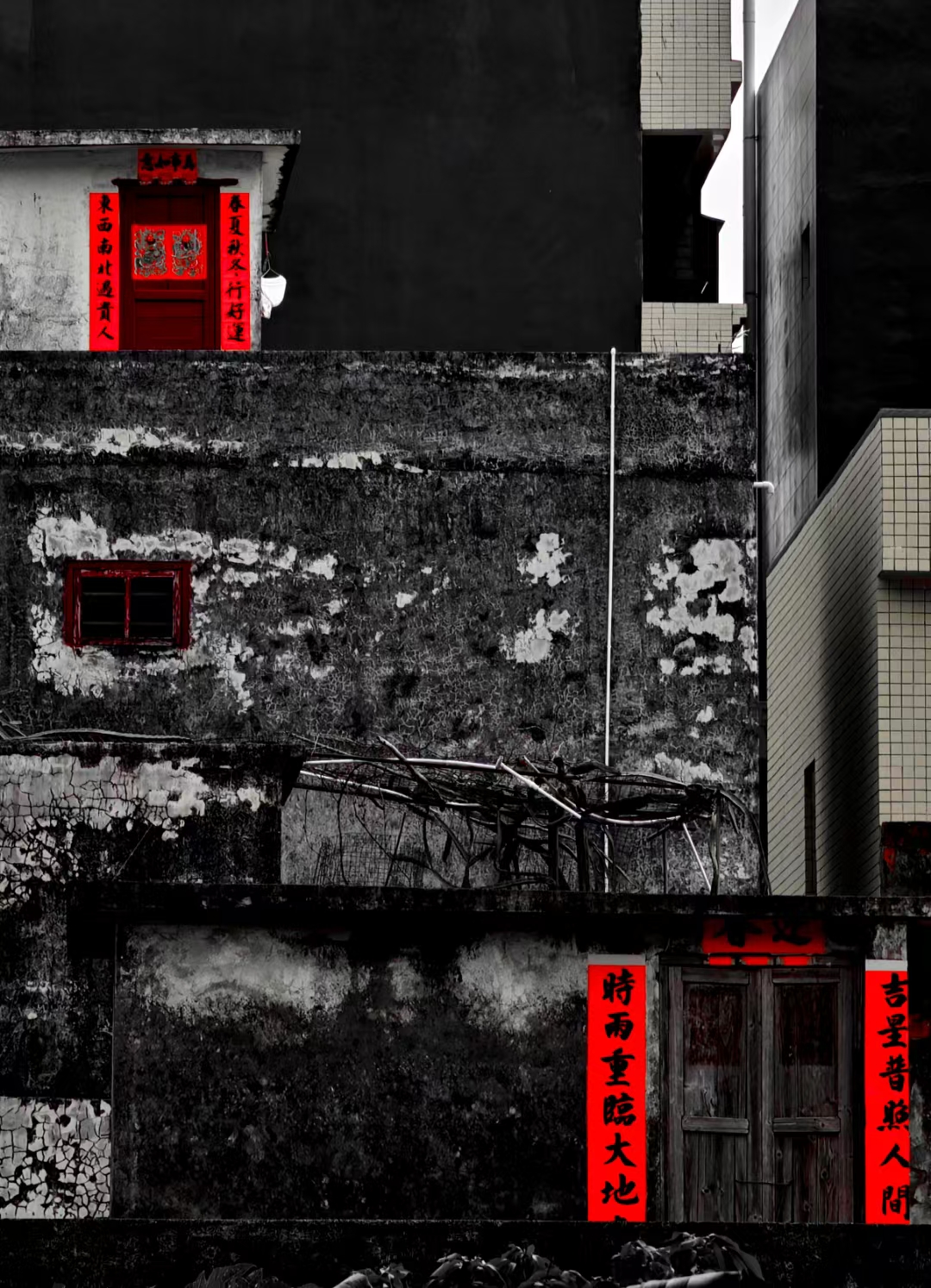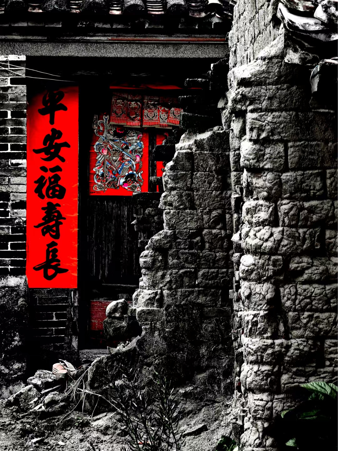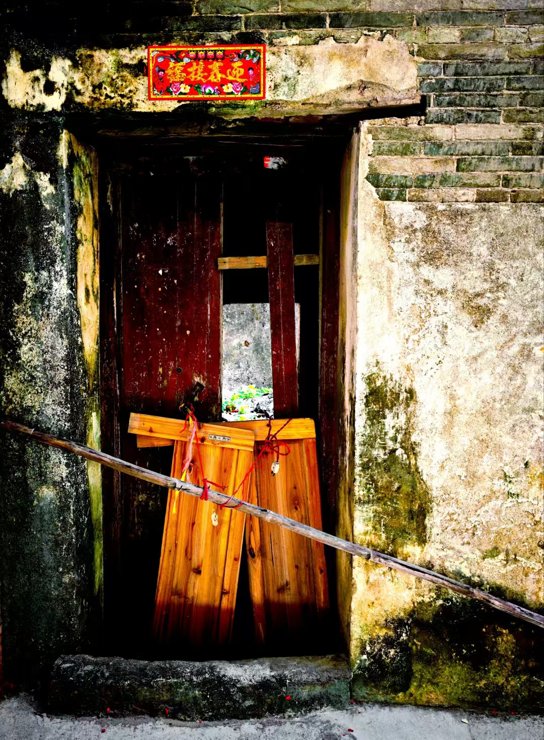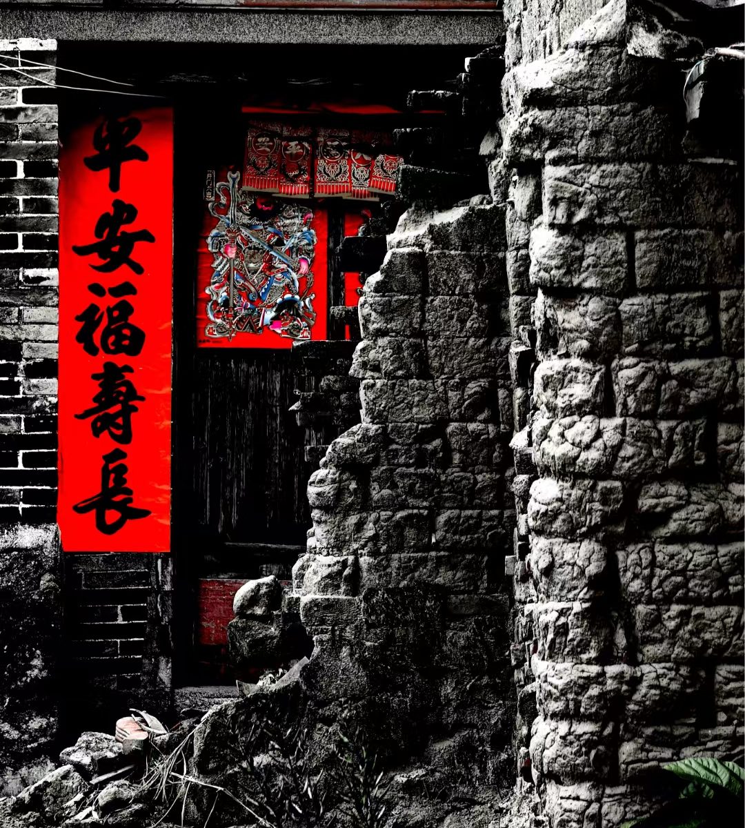 闸坡那站村老屋不知道住过几代人,房主人或早已离开了这里,或住进了自建新楼房,新年后的村子虽然少见人影,但有的老屋还贴上了新春联,可以想见的是,这里曾经肯定飘起过无数次的缕缕炊烟、留下了屋主人一段难舍的回忆……