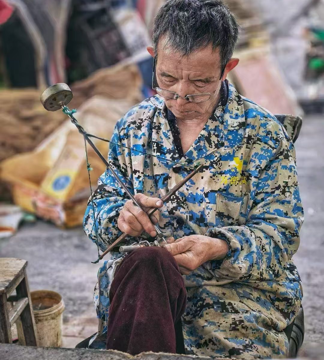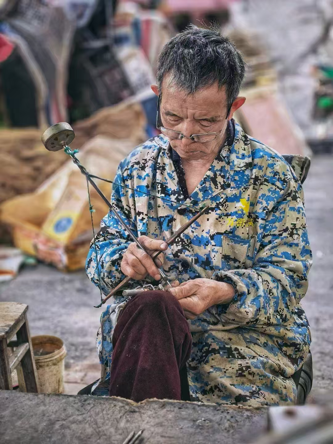 在喧嚣市井的一隅,一位钉秤老人专注地打磨着一把新秤。手中的工具,是他谋生的伙伴,也是传承技艺的“笔”,更是岁月的痕迹。他守着这份传统手艺,在时光洪流中,成为一抹独特的风景。