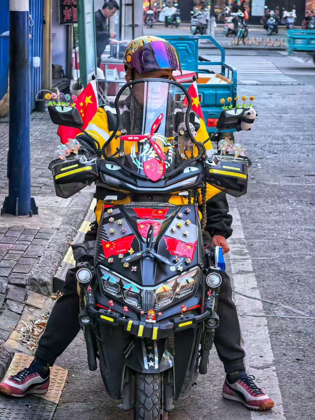 街头偶遇外卖小哥的这辆电动车,被狠狠惊艳到!车身装饰着各种鲜艳的五星红旗,还有各种可爱小物件俏皮点缀,仿佛在诉说着对生活的热爱。车主想必是个有趣又爱国的人,每一处细节都藏着巧思,让平凡的出行也能充满仪式感。