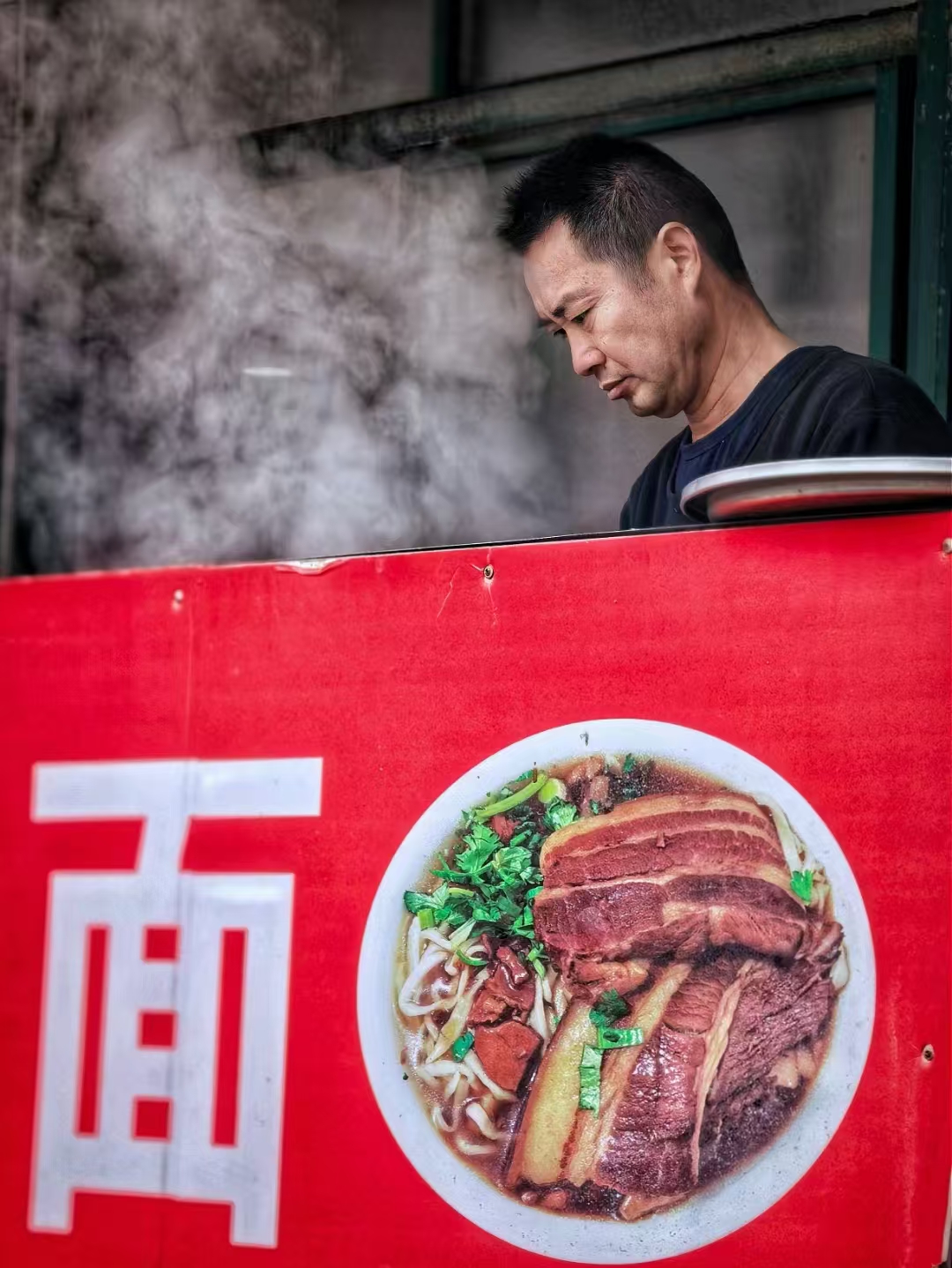 街头巷尾,热气腾腾。那一方红色招牌下,是香气四溢的面。大片的卤肉铺陈,翠绿葱花点缀,每一根面条都裹满汤汁。摊主专注的神情,藏着对美食的执着。这一碗面,是平凡日子里的慰藉,也是人间烟火的生动注脚。
