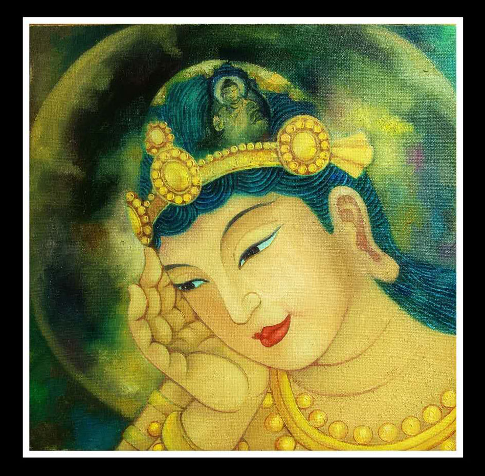 这是根据一幅图片为素材,再创作的作品。这幅原图很受人们喜爱,以它为素材很多作者创作了不少油画,水粉画,国画和板画等。这种再创作的结果各有干秋,色彩色调也不尽相同。我将其原图翻了个面,并作了些取舍及长宽比的调整,用肖像画的技法图式,创作了这幅作品,朋友们觉得怎样,不得而知。不过,自己喜欢它这个样,而且努力把它完成了。