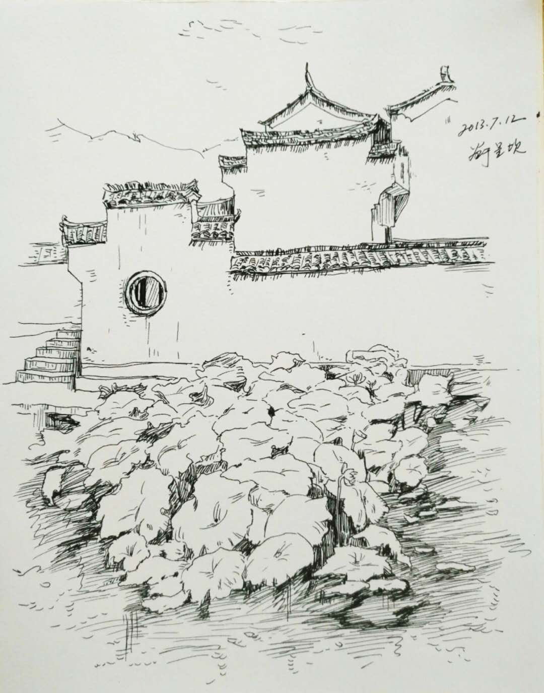 荷塘(画于安徽呈坎)