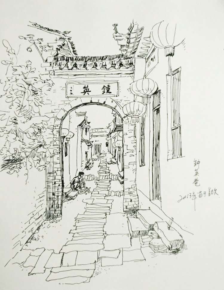 锺英巷(画于安徽呈坎)
