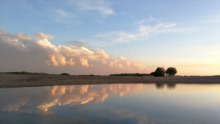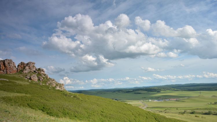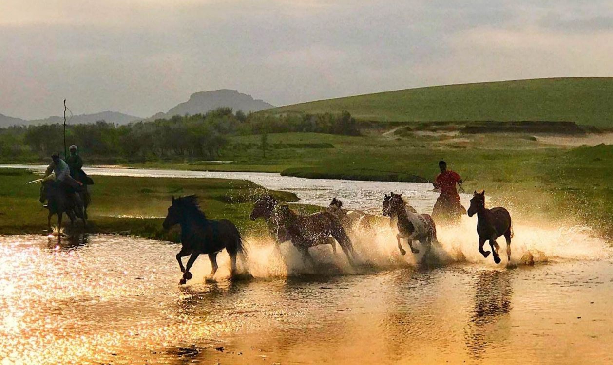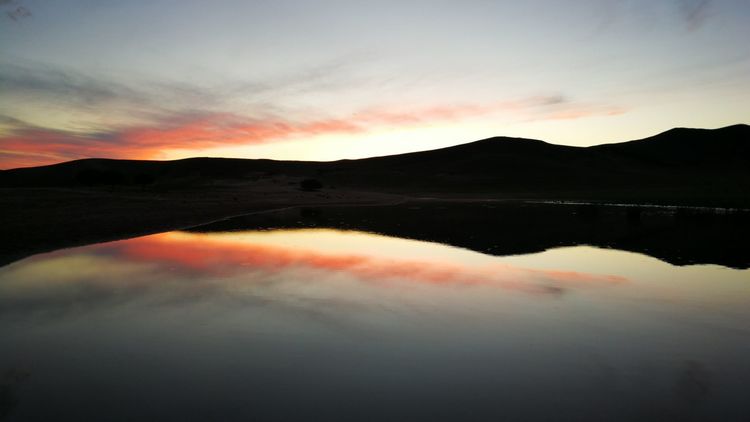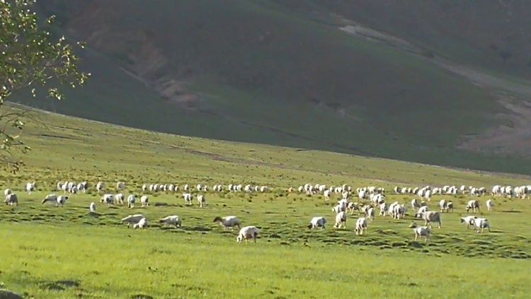 晚风渐强,劲风卷走了云儿。这时的草原,绿草与蓝天相接,天光与湖光辉映,随处可见天苍苍,野茫茫,风吹草低见牛羊。