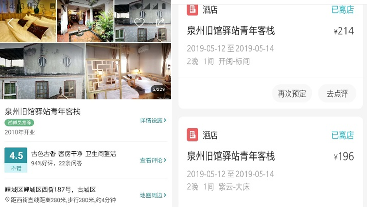 经过再三对比,我们和同命人孙姐挑选了位于西街内非常狭窄的一条小胡同里的青年旅社。虽然它设施比较简单,但是充满了闽南老民宅的风情,可以让我们深入的体验真正泉州人的生活;而且这里位置方便,走两分钟就可以到达西街街面,享受各色美食;再有就是价格及其便宜,我们赶上做活动,双床房每天107元、大床房98元!!!