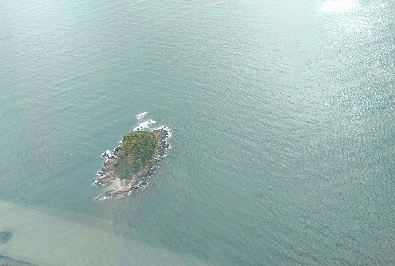 翡翠岛像是镶嵌在淡蓝色磨砂玻璃一样平静海面上的一棵翡翠,真想摘下来占为己有。