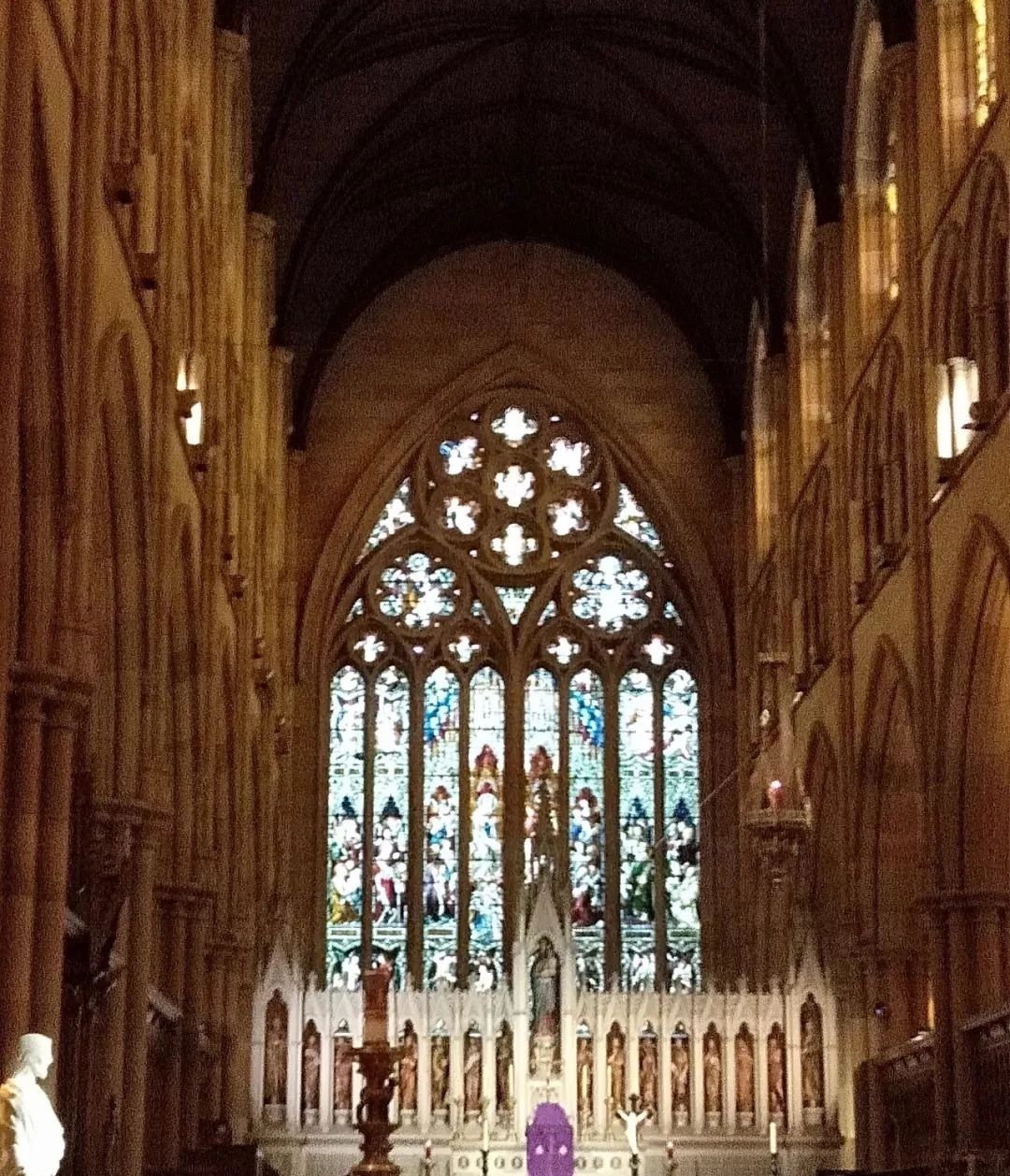 我们接着又来到了圣玛利亚大教堂,它是澳大利亚天主教堂之父。大学和教堂由于建造时间相对较早,所以都沿袭着欧洲的“哥特式”建筑风格,但内部装饰和欧洲本土的比较还是逊色不少。教堂对于我们这些非信徒来说,仅仅是欣赏一下他气势不凡的建筑而已。