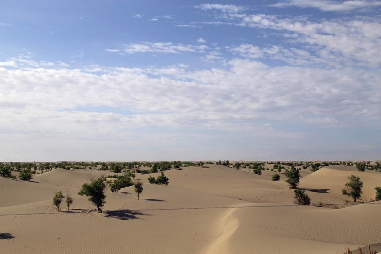 景点:沙漠公路 。一天都在沙漠公路行驶,塔克拉玛干沙漠公路有二条,我们走的是阿拉尔至和田公路,一路走下来此条沙漠公路防沙治理的非常好。