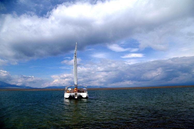 连霍高速在赛里木湖那段正在修路,正好走下面看赛里木大桥。