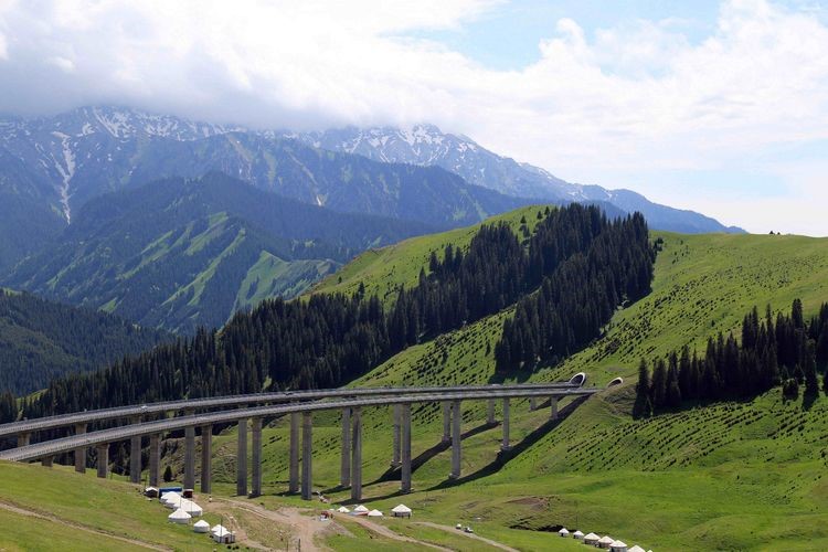 今天是独库公路开放第一天,由于我们想去赛里木湖,所以在独库公路只走了50公里就返回到独山子。