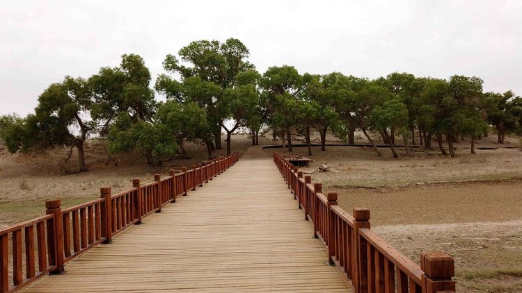 景点:额济纳胡杨林。在额济纳下高速准备参观额济纳胡杨林,下午到达额济纳胡杨林景区。这时候的胡杨林还全是绿色的,可能又是下午的原因,整个景区基本上没有游客,成为我们二人专场。听当地人介绍黑塔胡杨也不错,遗憾的是我们到达景区时已关门。