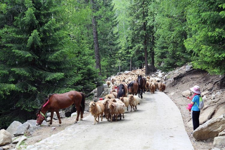 景点:可可托海,三号矿坑。景区一开门正好赶上牧民转场,通往景区路上全是牛羊群,好是壮观!就是气味道不好。哈萨克牧民要到山上牧场放牧,9月份才能下山。