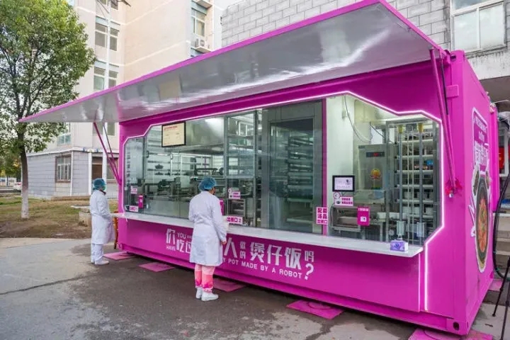 看吧,这是抗疫期间,在武汉街头出现的碧桂园煲仔饭机器人,正在给医护人员不停歇地生产着热乎乎的食物。