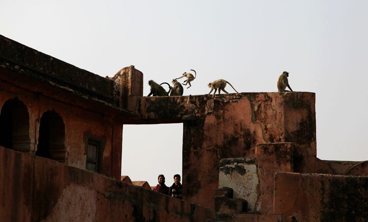 杰加尔堡还是猴子出没的地方,我从没看见过和山羊一样大的猴子。这些猴子不怕人,跳到马路中间吃东西,大摇大摆的走路,不给汽车让路,旁若无人般快活。有的窜上城墙,有的怀里抱着小猴子飞快奔跑。我发现这些猴子都挺干净的,毛发油黑锃亮。可能营养好的缘故吧。总之,这也是杰加尔堡一道独特的风景。