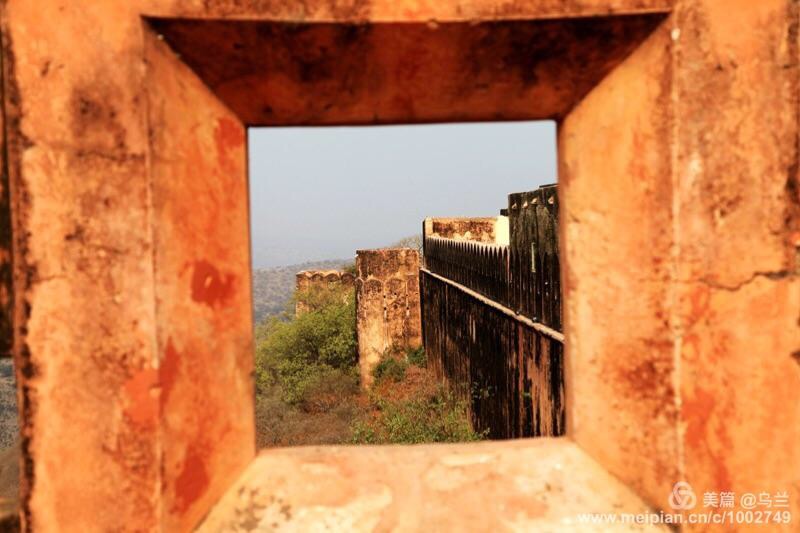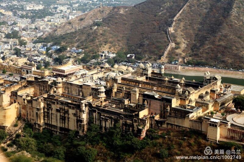 在杰加尔堡参观,让我们大开了眼界,里面别有洞天,玄机重重。我们走着走着就迷了路,左拐右拐找不到出口,总要费了一番功夫才能走出古堡。当我们站在山顶眺望,斋普尔全城尽收眼底。尤其半山腰的琥珀堡,壁垒森严,铜墙铁壁一般。蜿蜒的城墙伸向远方,听说这是当年仿造中国的长城建筑的。
