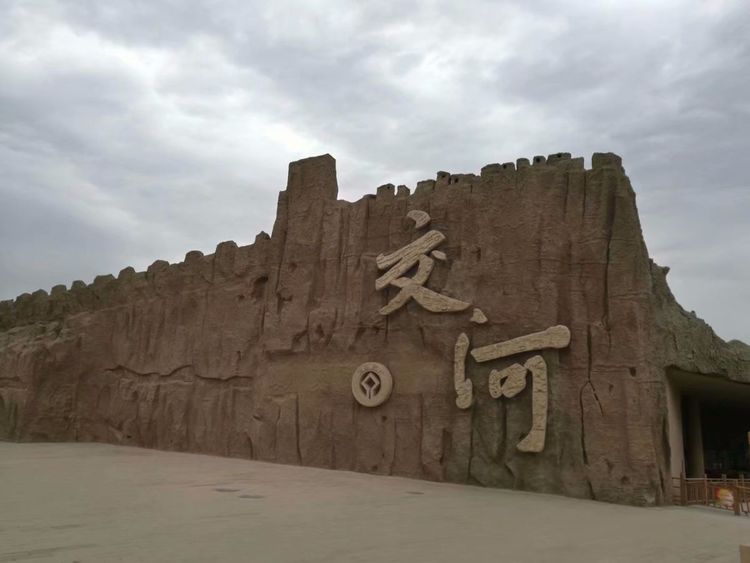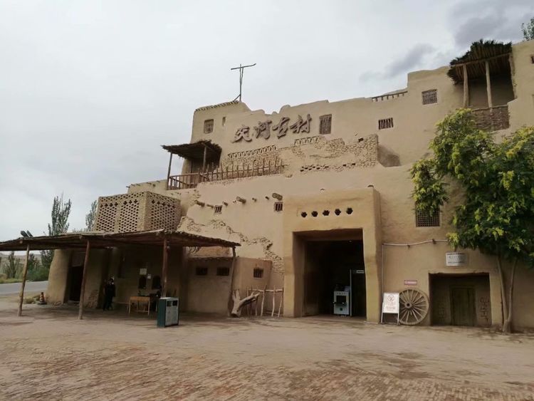 这个景点距吐鲁番城不远,大约二十分钟就到了。这里有一座两层楼高的沙土色标志性建筑,形似一座历经千年的故城堡,不知哪位名人题写的“交河”两个大字很是醒目。