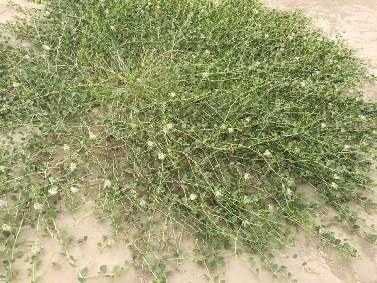 交河古城四季无雨雪,路边无水浇灌的小西瓜秧开着小白花
