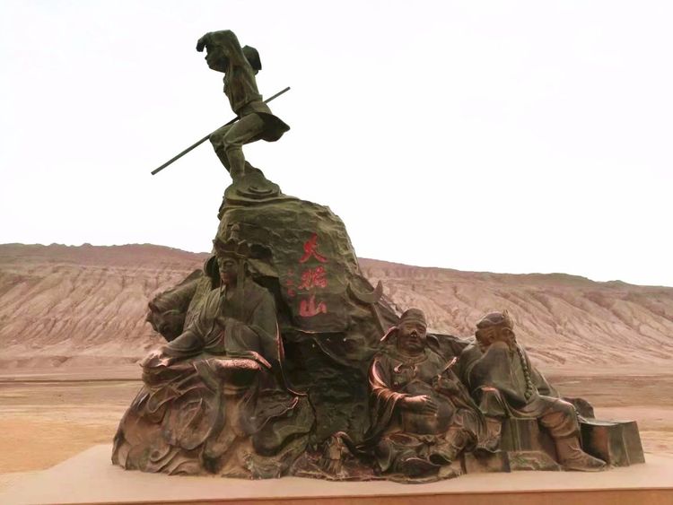 吐鲁番六月的天,说变就变,当我们刚刚在唐三藏师徒四人群雕旁拍完照片时,铁扇公主也许不高兴了,迅即扇起一阵旋风,顿时吹得我们灰头土脸,于是不得不上车离开。看着面前腾云驾雾的”悟空”,我心中竟暗暗呼唤起来:悟空,快去借那芭蕉扇来!