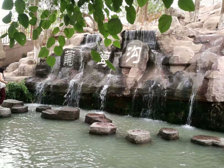 之后我们再向里走去,走过一座下方流水湍湍不起眼的小桥,进入纯粹的观光区。但见葡萄沟的标志俨然进入视野。