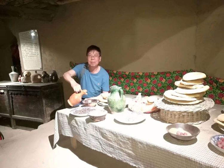 内中陈设引起我们极大兴趣,我们于是便有模有样地“生活”起来,又“吃”又“喝”,留下一张张照片,以示到此一游。