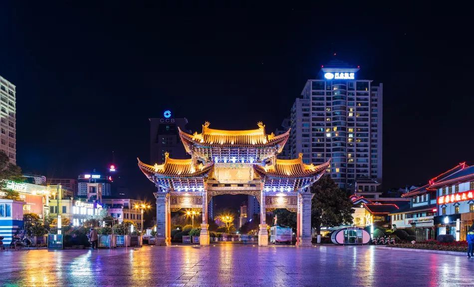 金马碧鸡坊建于明朝宣德年间,如今是昆明的地标和市中心。夜里,周围街道上常常有热闹的夜市可选择自己喜欢的东西,也可在各个小吃摊边大快朵颐。