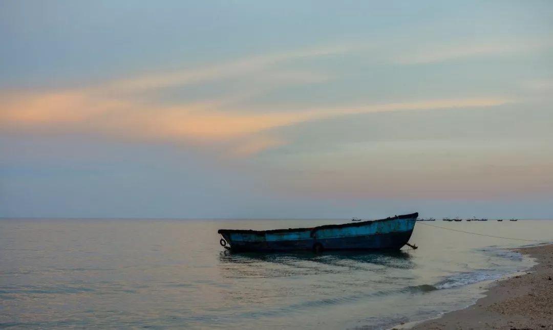 北海的天,也蓝得格外别致,记得看到过这么一句话:日出时分和日暮时分的成色,是检验一片海滩是否值得一去的最好标准。嗯,又多了一条来北海的理由。