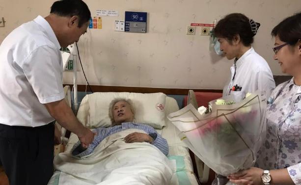 因身体状况不能到场,在医院里观看直播,当时97岁的她端庄、优雅,梳妆整齐、神态从容。没有一丝狼狈与脆弱!