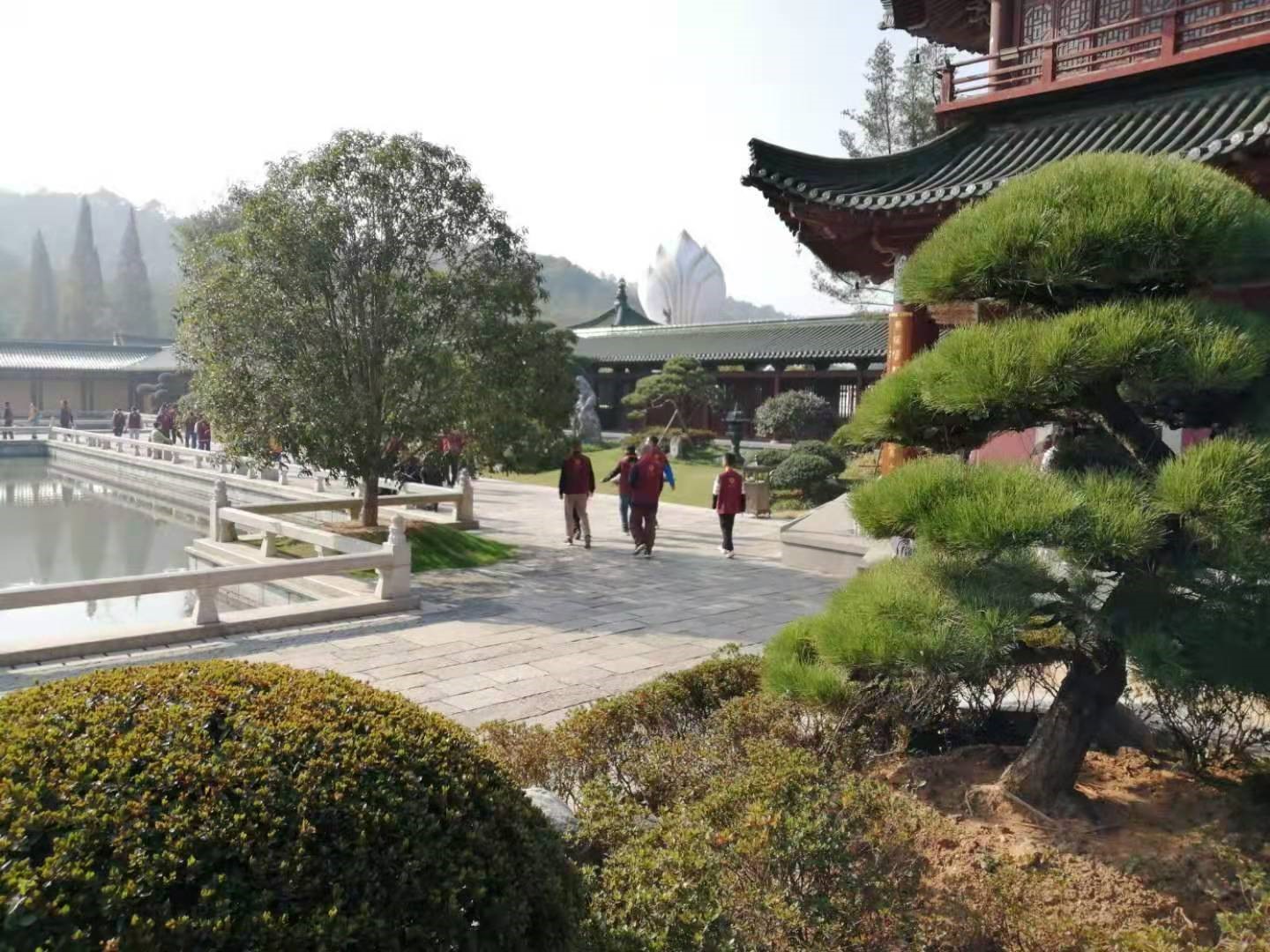 在东林寺,无论是觐见还是观光,抑或是休闲的人们 ,不管是在庄严的大殿里还是身处庭院,大家都会有着一种身浴朝阳,面拂春风的阳韶和熙的感觉,感受不到丝毫的森然之气。我想,这应该就是人们在东林寺能够久待而不愿离去的主要原因罢。
