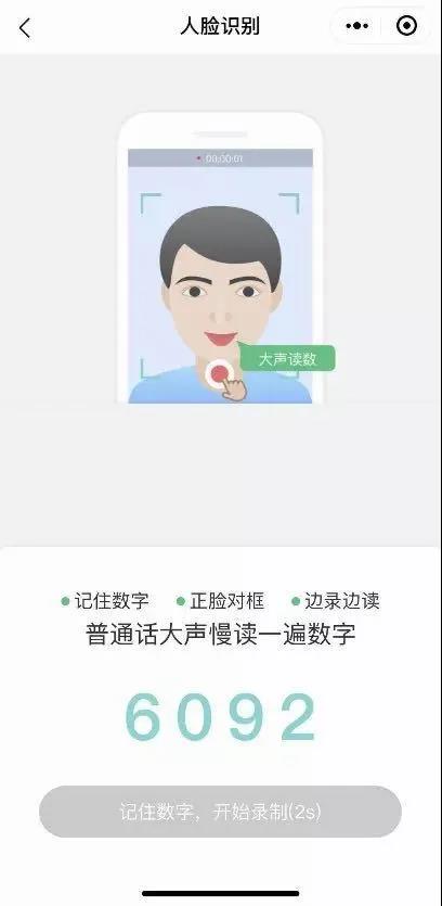 2. 读数认证:当屏幕出现4位数字,需要您读数,请您正面对屏幕,一边读数字一边录像进行认证。