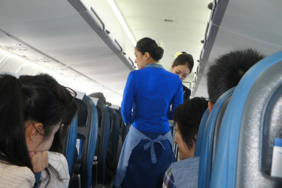 从上飞机起,我们就开始感受到老挝空姐慢条斯理柔柔的服务。飞机慢慢地在低空稳稳当当的飞行,窗外一片片茫茫林海始终撞击着双眼,打消了之前怕飞机翱翔蓝天颠簸厉害的忐忑心理。在机场,我们感受到了到老挝安检人员慢悠悠的办事风格。