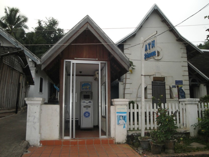在琅勃拉邦生活很方便,居住的宾馆设施齐全,免费的早餐味道不错;你不用怕这落后而与世隔绝——宾馆都会提供免费wifi,上网不用发愁;出门最好步行,或打“嘟嘟车”;在琅勃拉邦使用的是本国货币——基普,或泰珠和美元。你不用担心,人民币兑换困难,很多地方都可以兑换。导游为我们准备了人民币兑换基普1:1250,一下子我们个个都成怀揣上百万(基普)的富翁。出于职业敏感,琅勃拉邦随处可见ATM,一台台ATM摆放在精致的小木屋里,根本没有像样的安全设备,可以看出这的民风淳朴,治安很好。