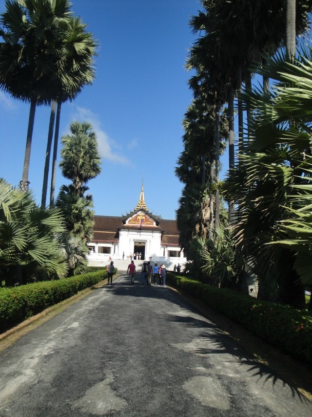 老挝国家博物馆,当地习惯叫“大皇宫”。这幢建筑物的历史并不悠久,是1904年才建造完成的。但它蕴藏着特殊的艺术风格,能观赏到老挝式建筑与法式建筑的完美融合。整个皇宫金碧辉煌,光艳夺目,殿内装饰古雅华贵。在这里还可以看到澜沧王国的遗迹和许多国家级的文物,这里是老挝最后一代国王西萨旺凡达纳的行宫,王室成员今已不知何处去,宫中可见昔日的大殿、议事厅、书房、收藏室、起居室等等,重点可以参拜琅勃拉邦名称的 “拉邦佛”。