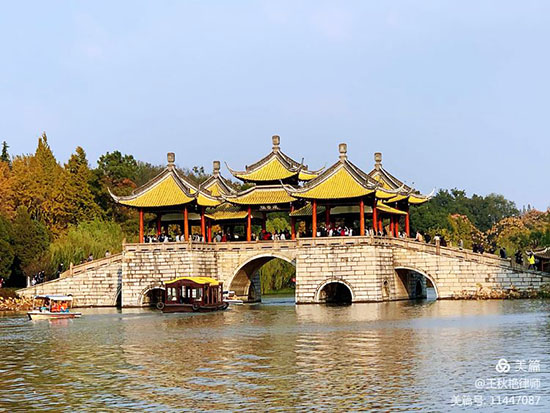 2012年游瘦西湖时,是从南门入园,先看的五亭桥,然后去二十四桥的方向。这次住宿临近东门,所以是从二十四桥的方向到五亭桥、白塔方向游览。
