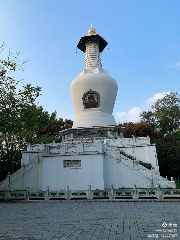 白塔塔身白色,也称观音寺白塔。高28.5米,平面呈八角形,砖石结构,和北京北海的白塔相比,多了几分秀丽。