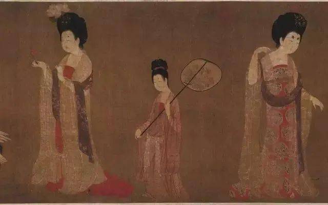 “ 鬓云欲度香腮雪,衣香袂影是盛唐 ”的别样丰腴身韵审美风姿的同时,看到这里,联想到中国传世名画里的“仕女图卷”。一开场的背景图为唐朝周昉的 《簪花仕女图》 ,现藏辽宁省博物馆。此画描写春夏之交时节一群服饰艳丽的贵族妇女在庭园里嬉戏、赏花的闲逸生活片断。《簪花仕女图》是最典型的唐代宫廷仕女绘画。