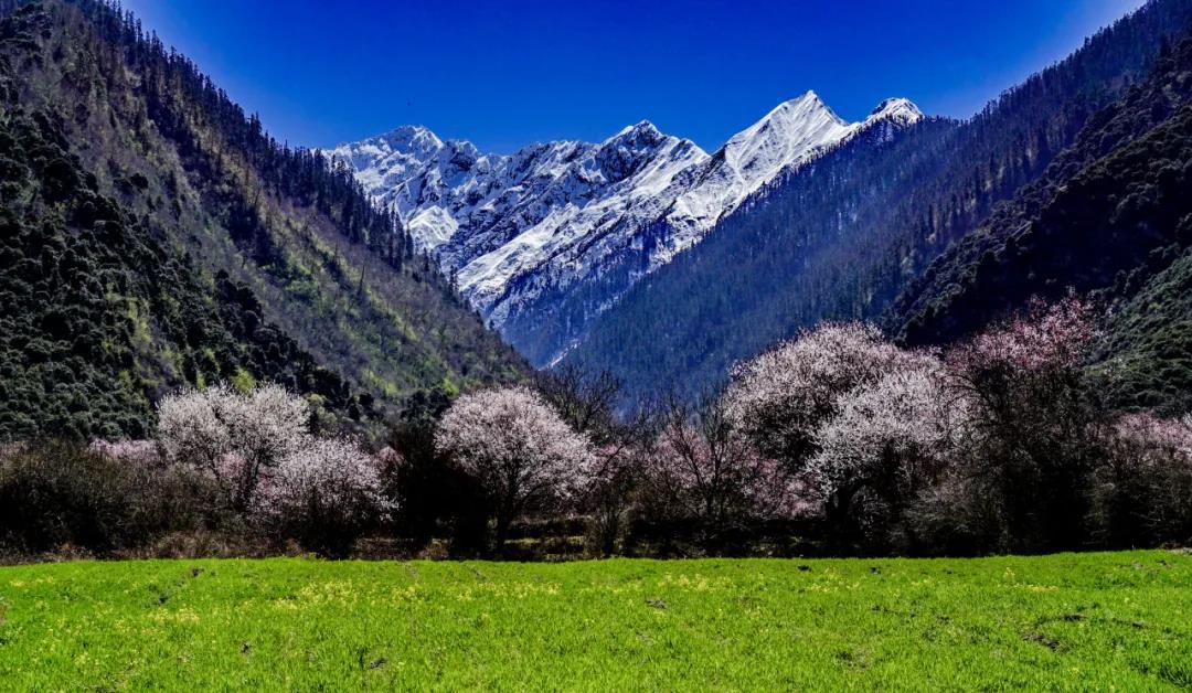 特别是在察隅的古玉乡,这里有一片天然野生桃林,这片桃林三面环山,高处有水源,四周林木葱茏,终年碧绿苍翠,涧有流水,清澈见底,是春季林芝赏花的好去处。