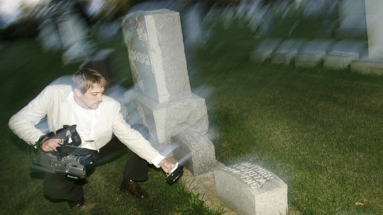 超自然研究者诺亚-沃斯在森普雷里公墓将一台摄像机对准一台电磁频率装置来记录任何反常的活动