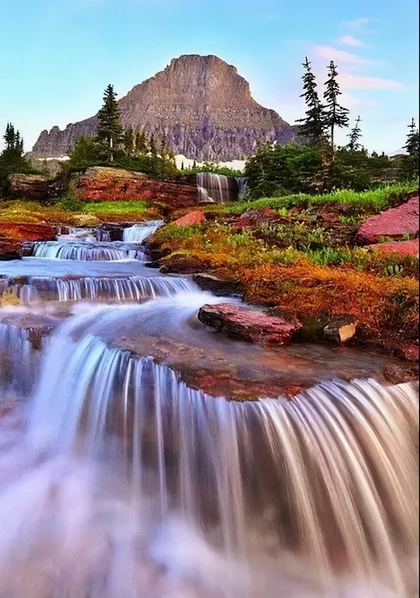 50、美国蒙大拿州,冰川国家公园的瀑布。