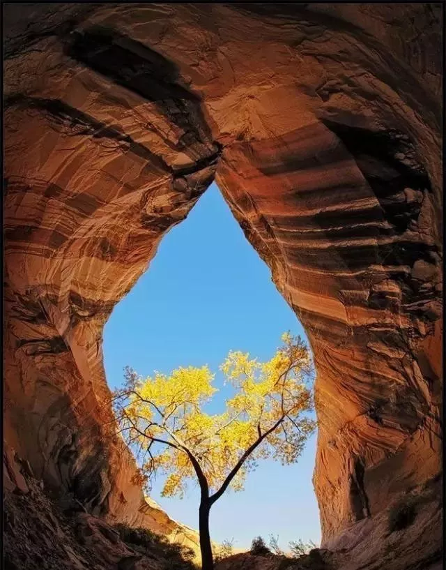 54、位于美国犹他州和亚利桑那州接壤处的天然砂岩凹室。