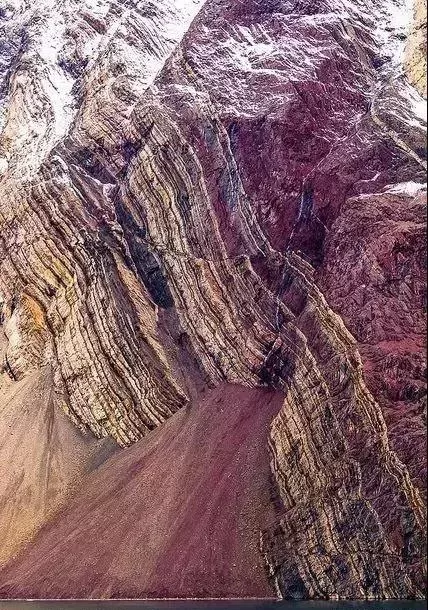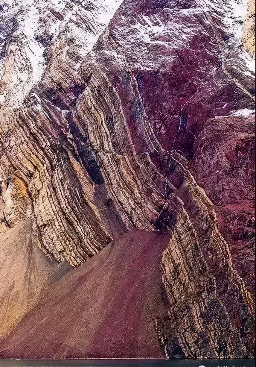 70、格陵兰岛约瑟夫峡湾的沉积层,格陵兰岛是地球上由于地壳运动碰撞而形成的第一个原来是海底大陆的岛屿。