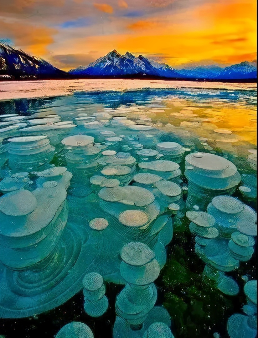 57、冻结的气泡,加拿大亚伯拉罕湖。