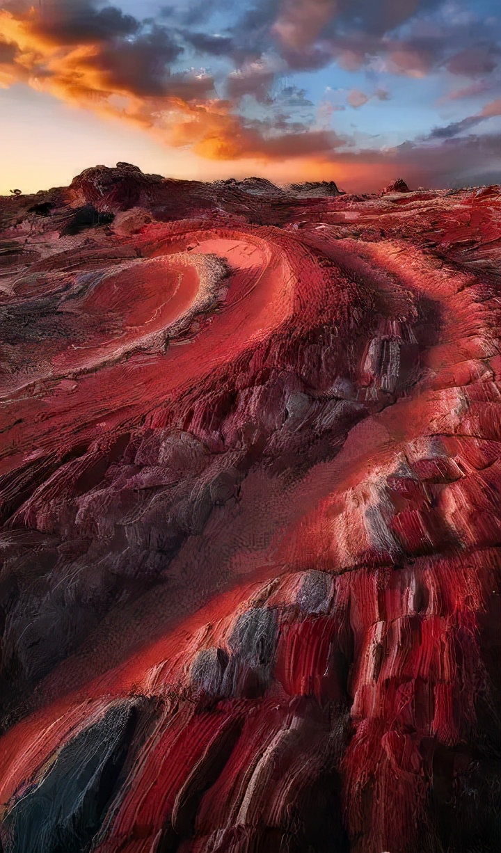 90、非洲纳米比亚,从一万米高空俯瞰的红色沙丘。