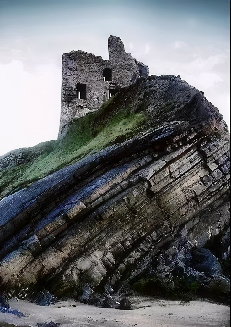 80 、巴利巴宁城堡,坐落爱尔兰克里县边界隆起的沉积岩上。