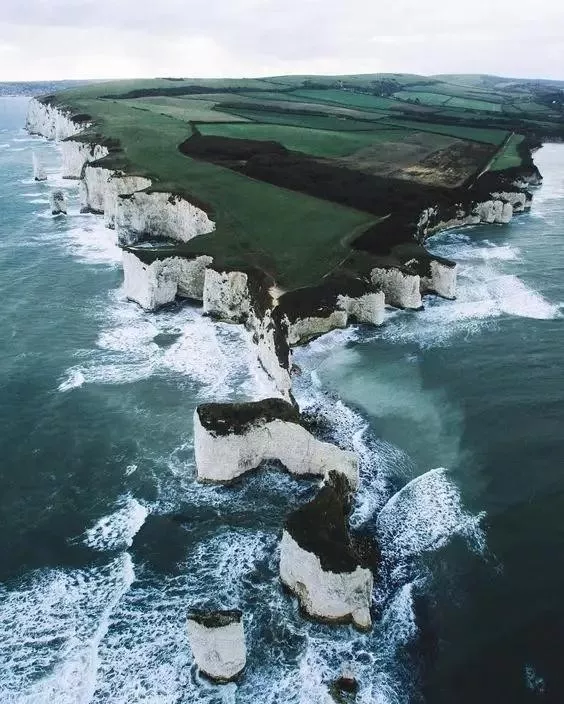 47、英国南部,多塞特岛,老亨利岩。系白垩系地层构造。岸边岩石是一种非晶质石灰岩,泥质石灰岩未固结前的样态,呈白色,主要成分为碳酸钙,多为红藻类化石所化成。